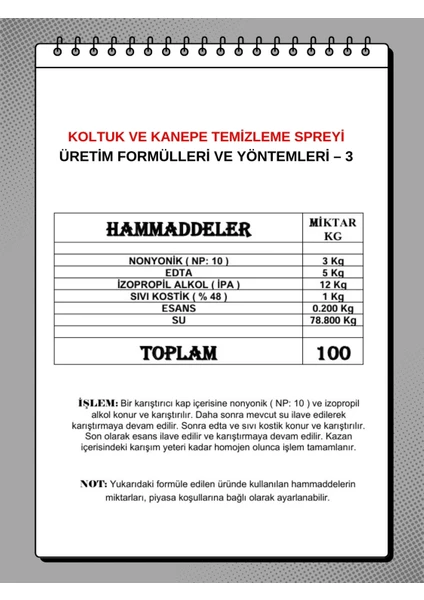 75 – YIKAMA YARDIMCI MADDELERİ İMALATI – 3 ( YAĞ VE KAN LEKELERİ İÇİN TOZ )